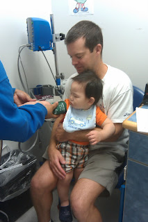We made our first visit to American doctor this morning. And they were impressed with his progress. He is physically right on schedule. Able to walk, climb up and down steps, pick up food by himself and play with toys. The only glitch occurred when they had to take blood. He gave the very famous look of Gary Coleman and Whatcha Talkin About Willis.